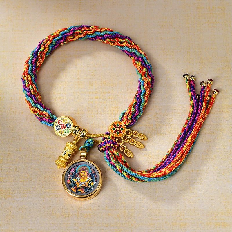 Yellow Jambhala (God of Wealth) – Handwoven Tibetan Thangka Blessing Bracelet